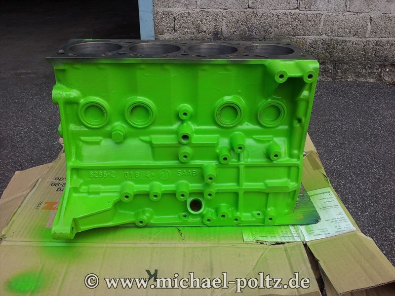 Neue Farbe für den Motorblock (Signalgrün Nr. 308 von Opel - aus den frühen 70ern)