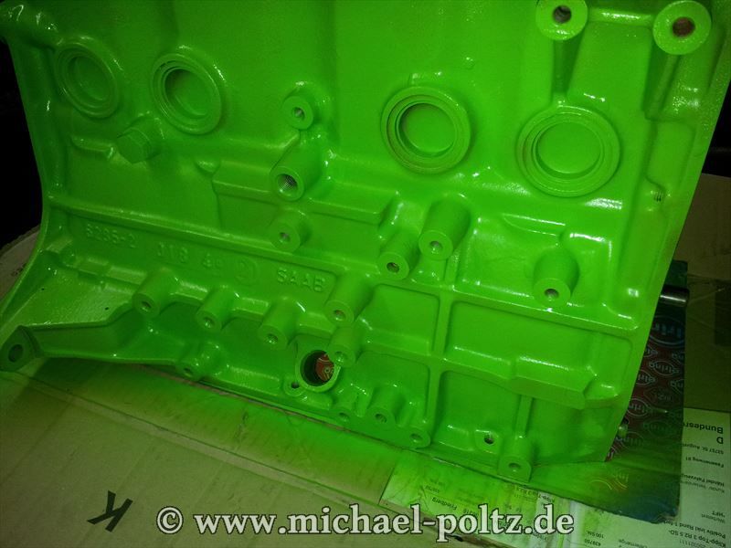 Neue Farbe für den Motorblock (Signalgrün Nr. 308 von Opel - aus den frühen 70ern)
