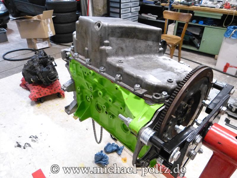 ...und die Ölwanne montiert. Auch hier habe ich die T40 Schrauben durch SW13 ersetzt.