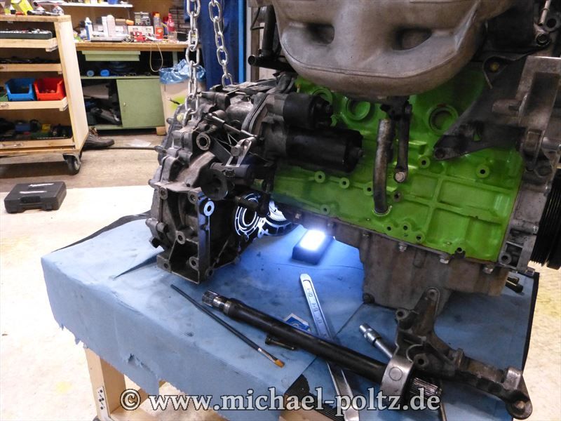 Als das Getriebe fest war konnte ich dann die Zwischenwelle ins Differenzial schieben und alles andere wieder montieren.