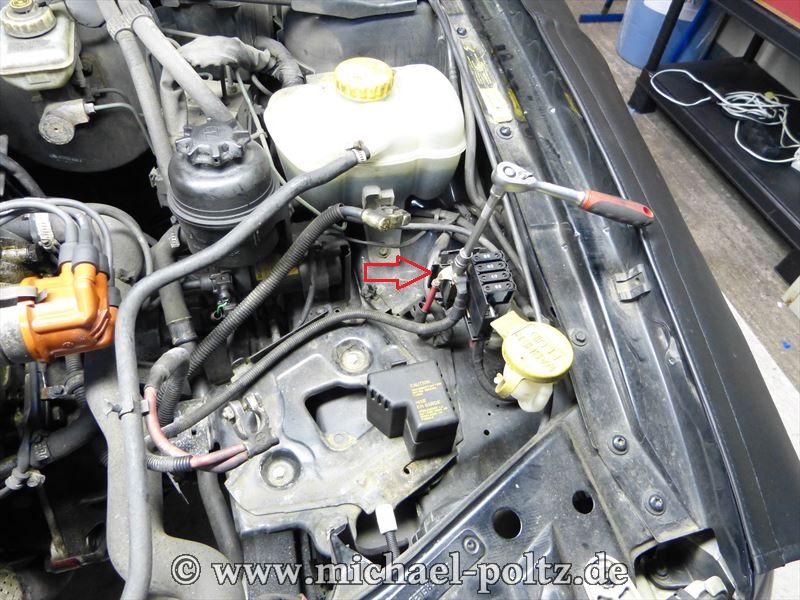 Ist die Batterie draussen, öffnet man den kleinen Sicherungskasten direkt neben der Batterie und löst die Plusverbindung.
