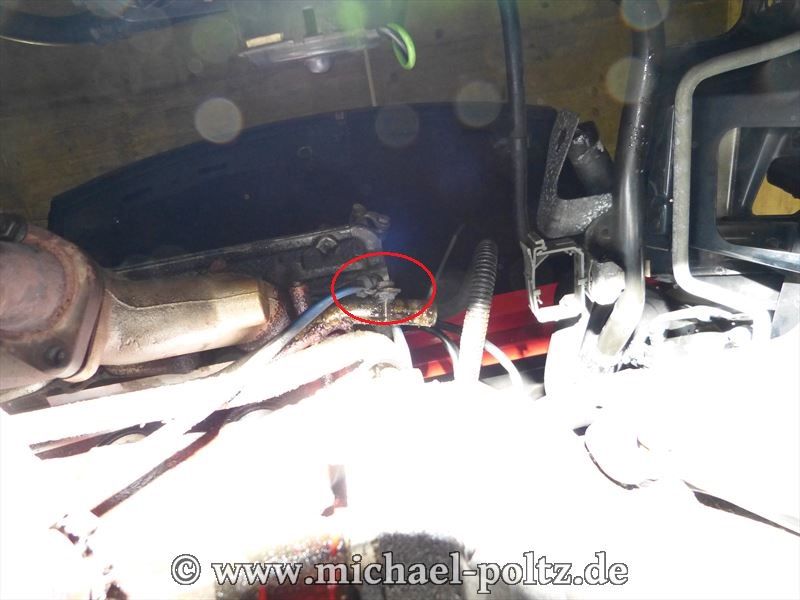Die obere Halterung in Höhe des Zylinderkopfes. Anschließend noch den Stecker lösen.