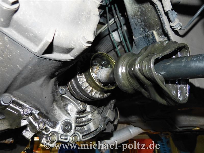 Auf der Fahrerseite was es mir jedoch nicht möglich das Antriebsgelenk von der Getriebewelle abzuziehen. Ich habe dann die Antriebswelle aus dem Gelenk gezogen. Dazu muss die Manschette gelöst, das Fett entfernt...