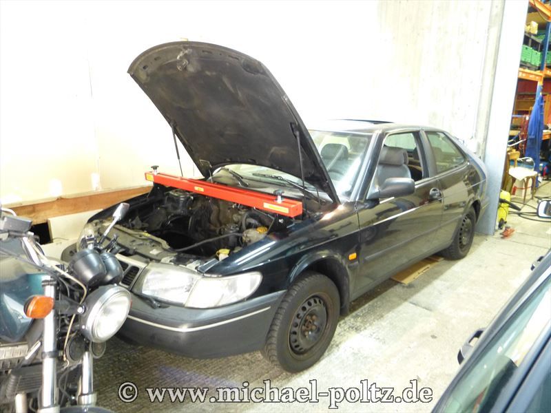 Hier in der Ecke wartet der Saab jetzt bis der Motor fertig ist.