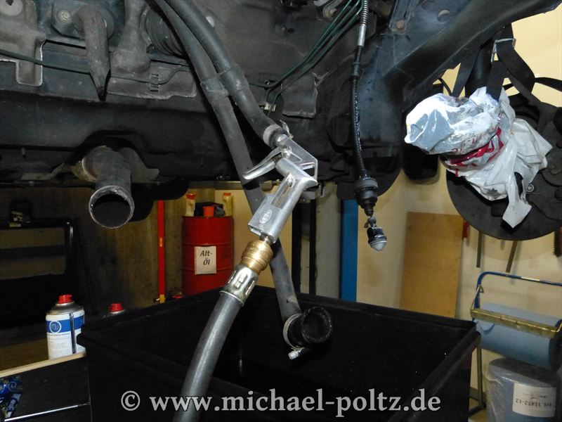 Den Wärmetauscher der Heizung wollte ich auf jeden Fall vom alten Kühlmittel befreien. Also : Druckluft rein - Kühlmittel raus :-))
