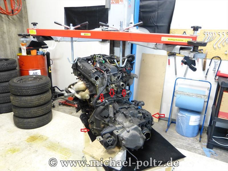 Als erstes sollte man das Getriebe vom Motor trennen (5 Schrauben).
