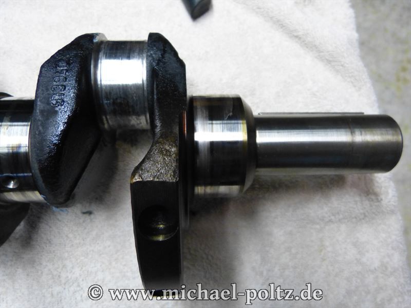 Die Lagerstellen der Kurbelwelle (von rechts) : Hauptlager 1; Pleuellager 1