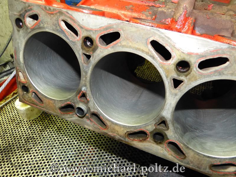 Die Reinigung und anschließende Expertenbegutachtung bei "Händel Fahrzeugtechnik" . Nur minimale Spuren an den Zylindern.
