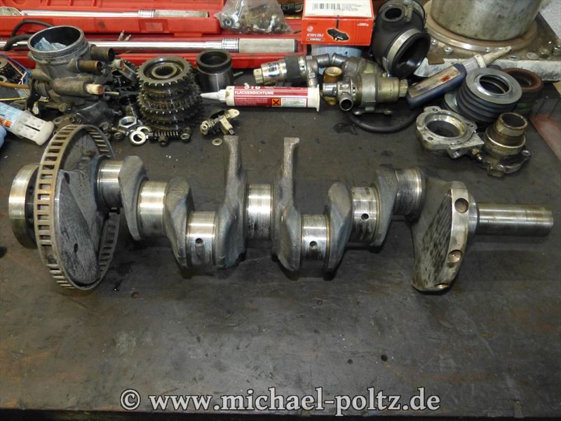 Die Reinigung und anschließende Expertenbegutachtung bei "Händel Fahrzeugtechnik" . Die Kurbelwelle wird geschliffen und weiterverwendet.