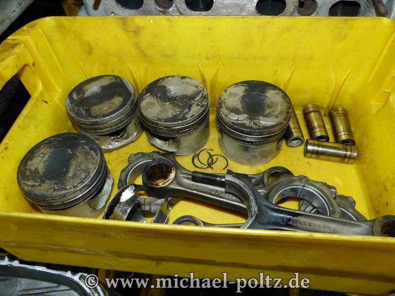 Nur minimale Spuren an den Kolben - nur ein Pleuel muß ersetzt werden.