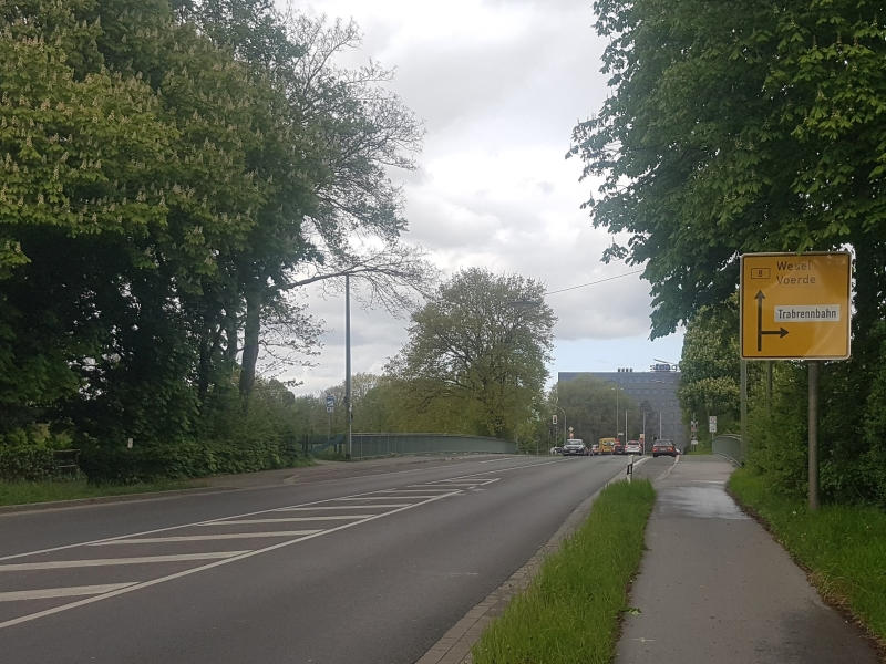 (weißes Schild „Trabrennbahn“) links in die Duisburger