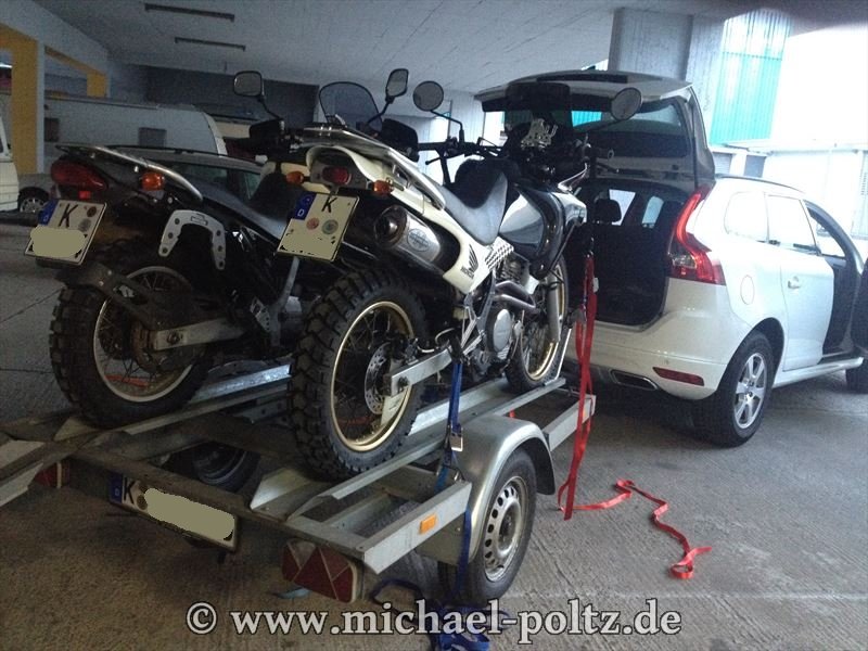 Am Abend vor der Abreise schon mal die Moppeds aufladen...